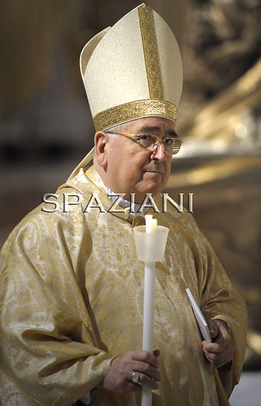 holds a candle during the Easter vigil mass in Saint Peter's